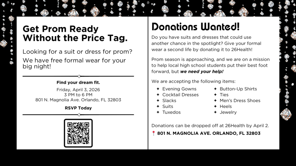 26Health is helping local high school students celebrate without financial stress by hosting Operation Prom, a free prom attire giveaway in downtown Orlando.
